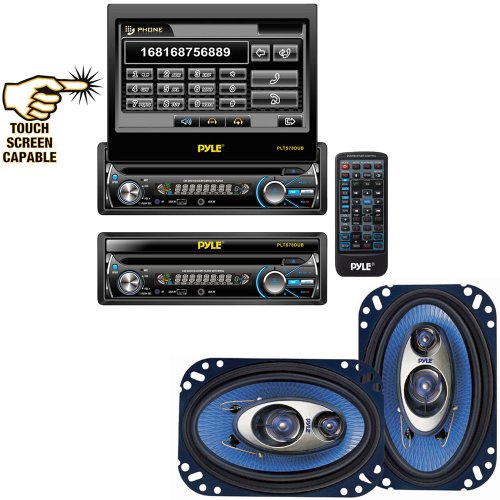 On Sale Pyle Vehicle Audio System for Car, Van, Truck, Mobile etc. - PLTS78DUB 7'' Single DIN In-Dash Detachable Motorized Touch Screen TFT/LCD Monitor w/ DVD/CD/MP3/MP4/USB/SD/AM-FM Bluetooth Receiver - PL463BL 4'' x 6'' 240 Watt Three-Way Speakers (Pair)